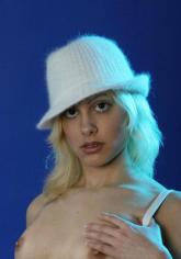 Blonde Lady ganz in Weiß. Heute ist Bettina ziemlich gestylt. Sogar ein kleines weißes Hütchen trägt sie, als sie mit ihrer Handtasche im Atelier herumschlenkert. Aber wer interessiert sich bei den Titten, dem Blick und dem Hintern schon für die Handtasche? Natürlich wollen wir Bettina. Flachlegen, durchnehmen, abficken. Das möchte man mit dieser weißen Göttin der Lust machen. Und dann greift man nach ihrem Schädel und zieht ihren süßen Hals auf unseren Pimmel.